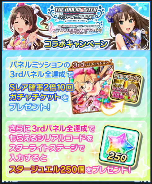 【モバマス&デレステ】シンデレラガールズとスターライトステージがコラボ!ガチャ10連&石250個配布!