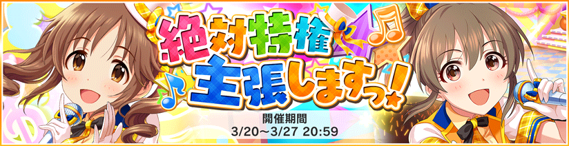 【デレステ】イベント「絶対特権主張しますっ!」開催!ランキング報酬「十時愛梨」 達成pt報酬「堀裕子」