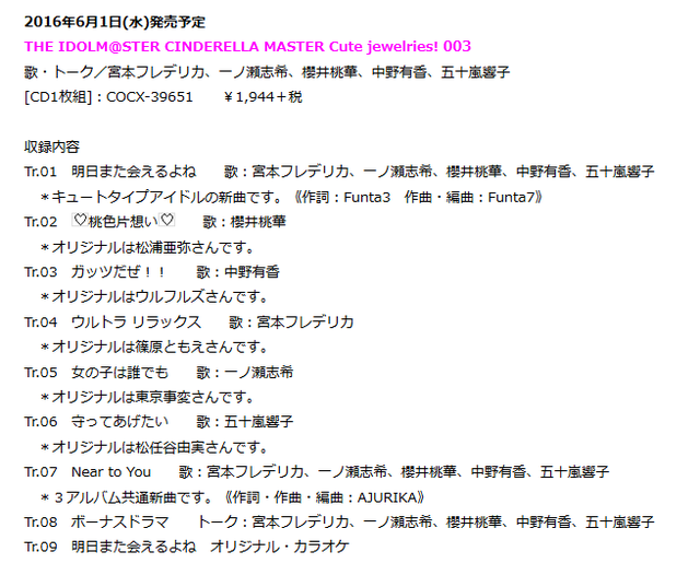 【モバマス】「Jewelries03 Cute」6月1日発売決定のお知らせ