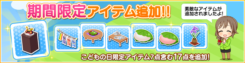 あいますっち: 【デレステ】こどもの日限定アイテム7点含むルームアイテム17点を追加