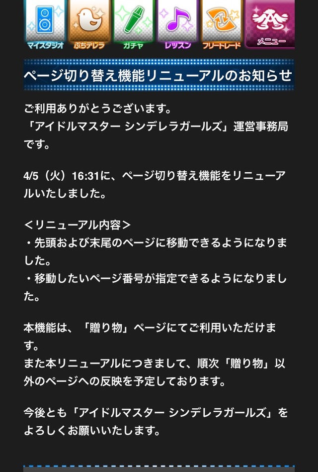 あいますっち: 【モバマス】「贈り物」ページにページ送り機能が追加された件について
