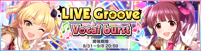 【デレステ】イベント「LIVE Groove Vocal burst」開催!ランキング報酬「城ヶ崎莉嘉」 達成pt報酬「緒方智絵里」