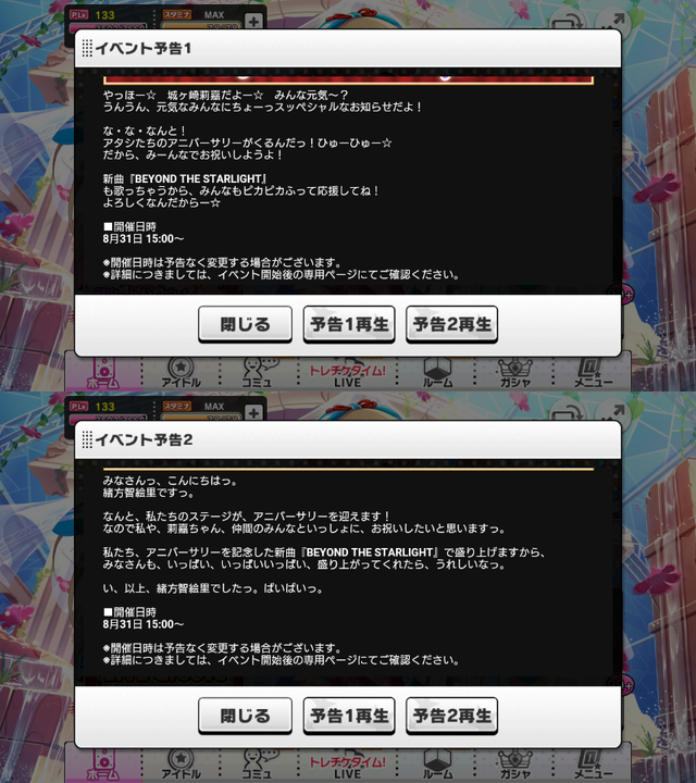 あいますっち: 【デレステ】新曲「BRYOND THE STARLIGHT」イベントが開催されるお知らせ(8月31日15時~)