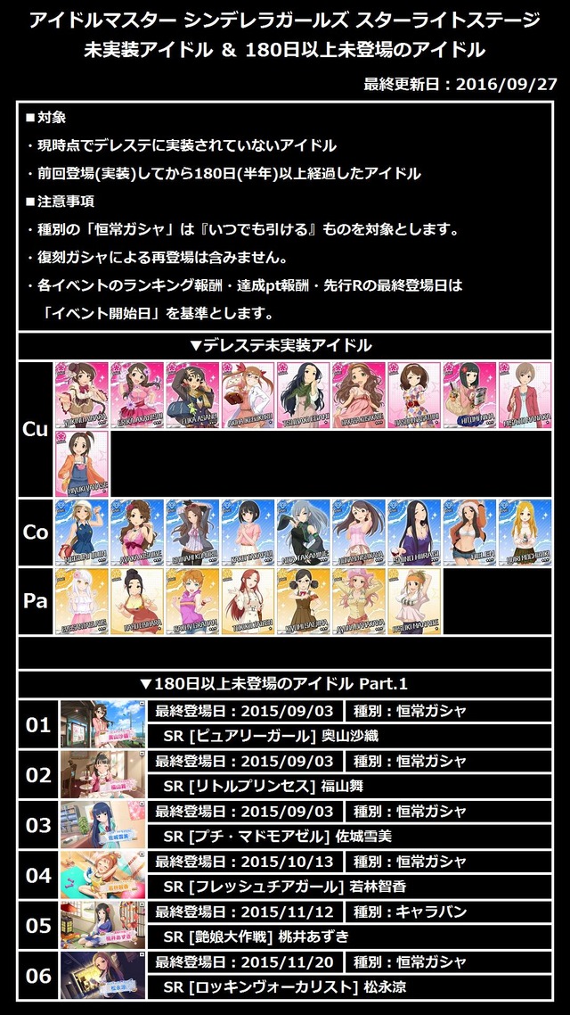 あいますっち: 【デレステ】未実装&180日以上未登場アイドル一覧(2016.09.27暫定版)