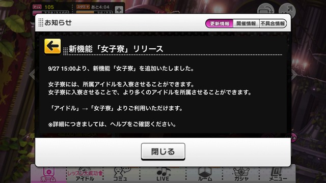 あいますっち: 【デレステ】新機能「女子寮」解放のお知らせ