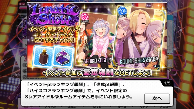 あいますっち: 【デレステ】イベント「LunaticShow」開始!参加アイドル「白坂小梅」「輿水幸子」「星輝子」「姫川友紀」「小早川紗枝」 KBKYZD結成!