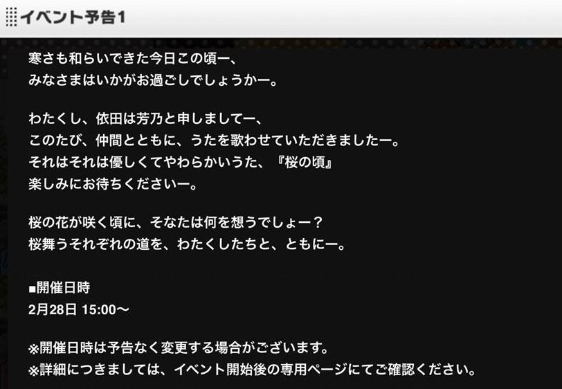 【デレステ】新曲「桜の頃」開催決定!報酬SR依田芳乃・SR道明寺歌鈴!(2/28 15時~)