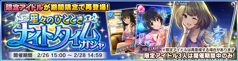 【デレステ】復刻「星々のひととき ナイトタイムガシャ」開催!