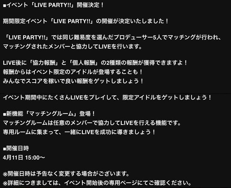 あいますっち: 【デレステ】イベント「LIVE PARTY!!」開催予告