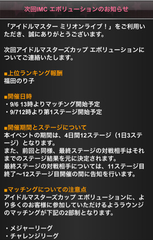 あいますっち: 【グリマス】次回IMCEは9月6日13時からマッチング!上位報酬は福田のり子!