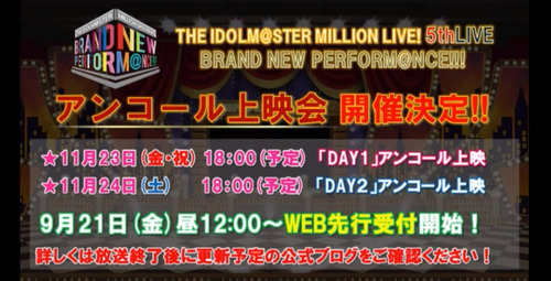 あいますっち: 【ミリマス】5thライブのアンコール上映会が決定!!明日12時からWEB先行受付開始!