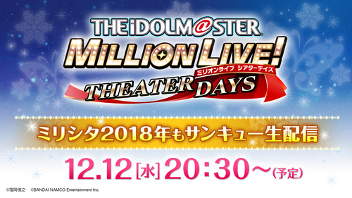 【ミリシタ】12月12日(水)20時30分より『ミリシタ2018年もサンキュー生配信』!