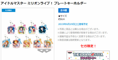 あいますっち: 【ミリマス】2019年6月29日に「ミリオンライブ! プレートキーホルダー」が登場!