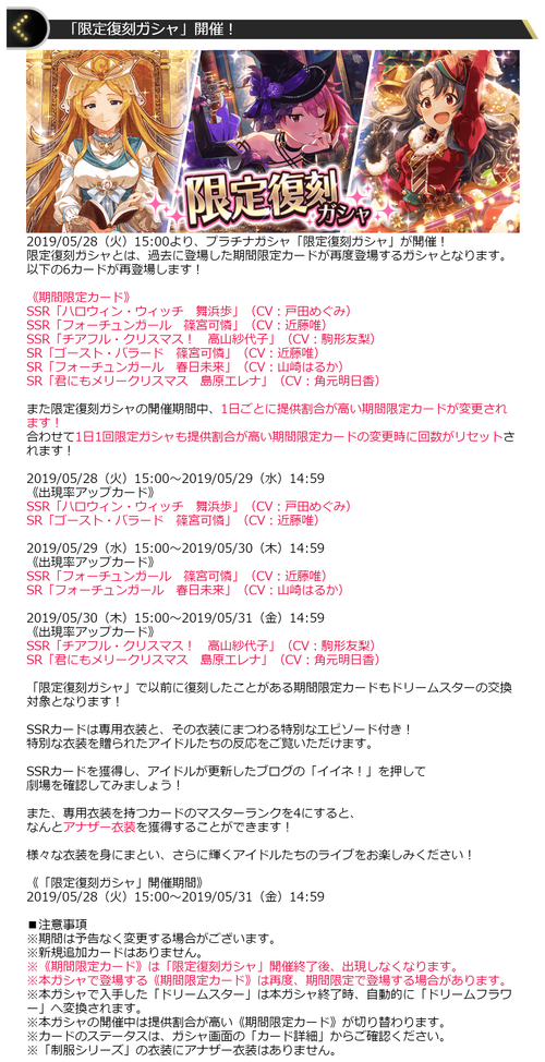 あいますっち: 【ミリシタ】『限定復刻ガシャ』開催!SSR歩、SSR可憐、SSR紗代子などが再登場!