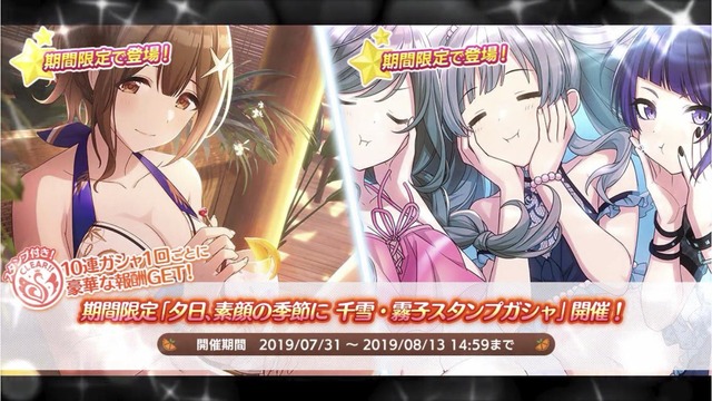 【シャニマス】「夕日、素顔の季節に千雪・霧子スタンプガシャ」よりSSR桑山千雪、SSR幽谷霧子が登場!イベントサマーミーツワンダーランド開催!報酬SSR杜野凛世!