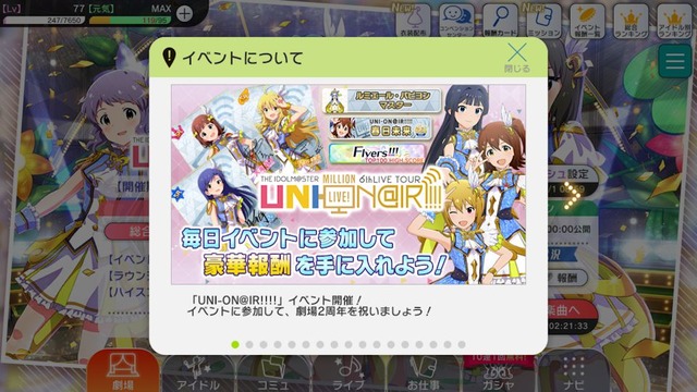 あいますっち: 【ミリシタ】イベント「UNI-ON@IR!!!!」開催! 周年イベント再び!