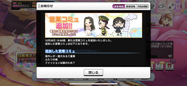 【デレステ】営業コミュ追加のお知らせ(2019.12)
