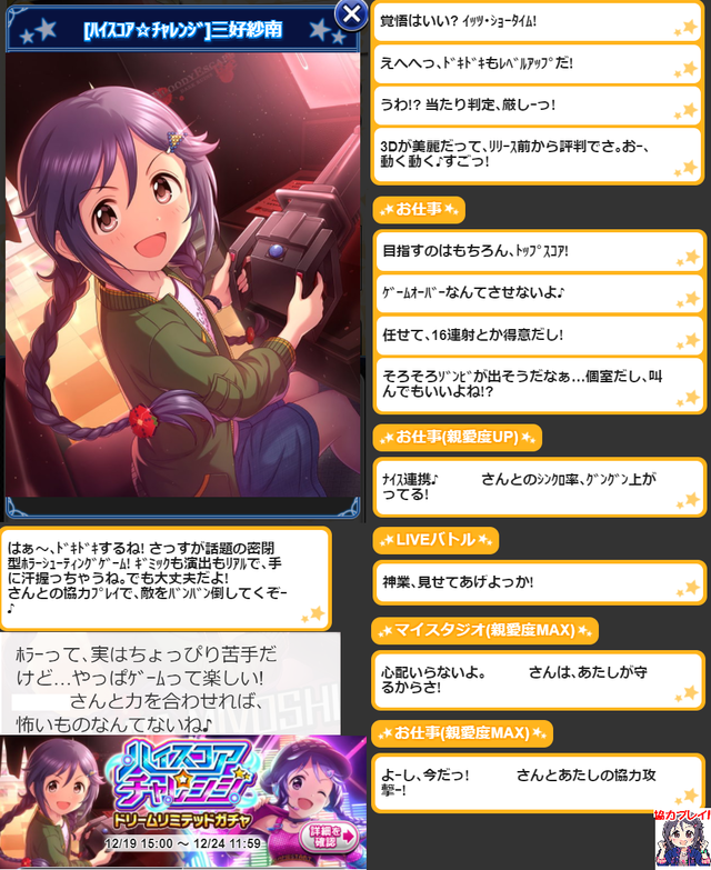 あいますっち: 【モバマス】[ハイスコア☆チャレンジ]三好紗南「3Dが美麗だって、リリース前から評判でさ。おー、動く動く♪すごっ!」