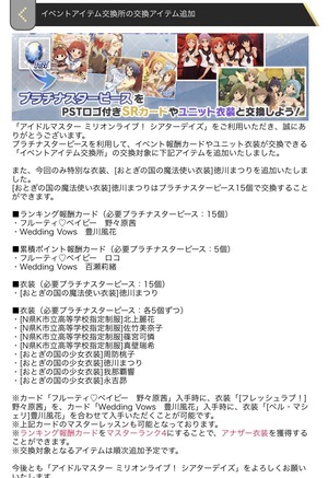 あいますっち: 【ミリシタ 】『イベントアイテム交換所』にカード・衣装追加!