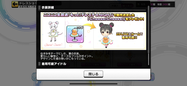 【デレステ】藤原肇2D衣装「Cheese ! Cheese ! 」追加。ドレスショップにて