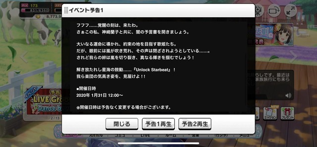 【デレステ】イベント「UnlockStarbeat」開催!報酬SR神崎蘭子、SR白雪千夜!