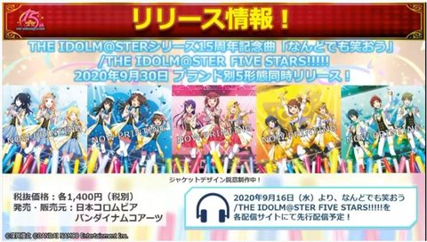 【CD】アイマス15th記念曲「なんどでも笑おう」ブランド別5形態同時リリース。予約開始!
