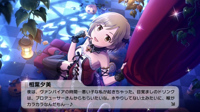 相葉夕美「悪い子な私が起きちゃった。目覚ましのドリンクはプロデューサーさんからもらいたいな」
