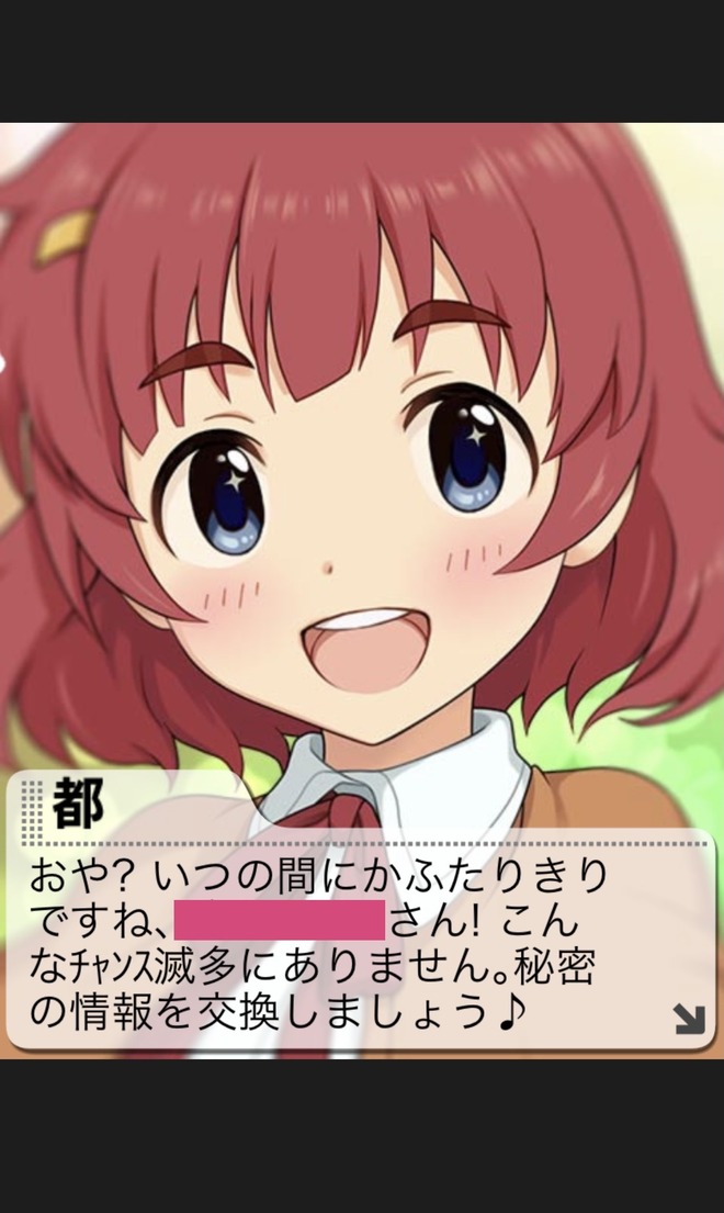 あいますっち: 【モバマス】安斎都、「いつの間にかふたりきりですね」という台詞回しにおや?という気持ちになったという報告
