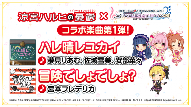 あいますっち: 【デレステ】ハルヒコラボ第一弾はハレ晴レユカイ(夢見りあむ・佐城雪美・安部菜々)、冒険でしょでしょ?(宮本フレデリカ)
