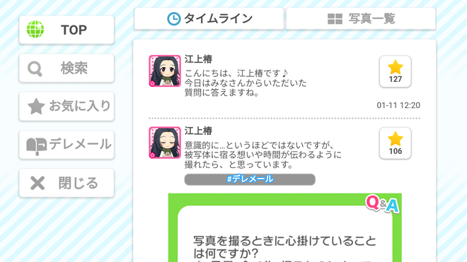 あいますっち: デレポ】江上椿のデレメールのお返事。「あいよー」が可愛い。